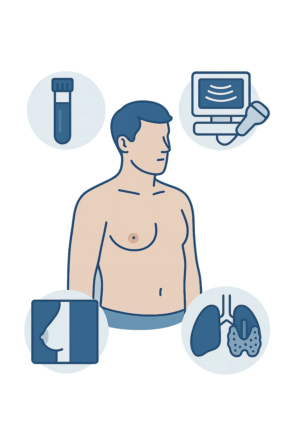 Комплексная диагностика помогает не только подтвердить наличие гинекомастии, но и выявить её первопричину, что особенно важно для правильного лечения.